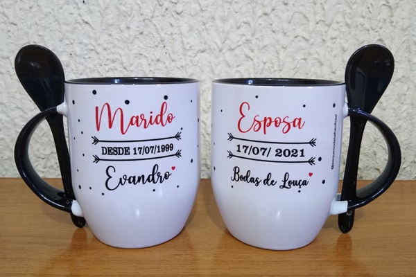 Canecas, camisetas, almofadas e muito mais, com a sua marca ou arte exclusiva.